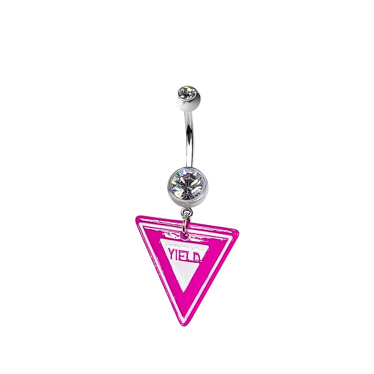 Belly navel ring yield sign pink triangle surgical steel 14g