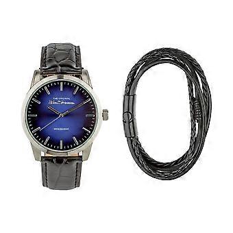 Ben Sherman Black Strap Watch Blue Sunray Dial Black Bracelet Gift Set BS114BG