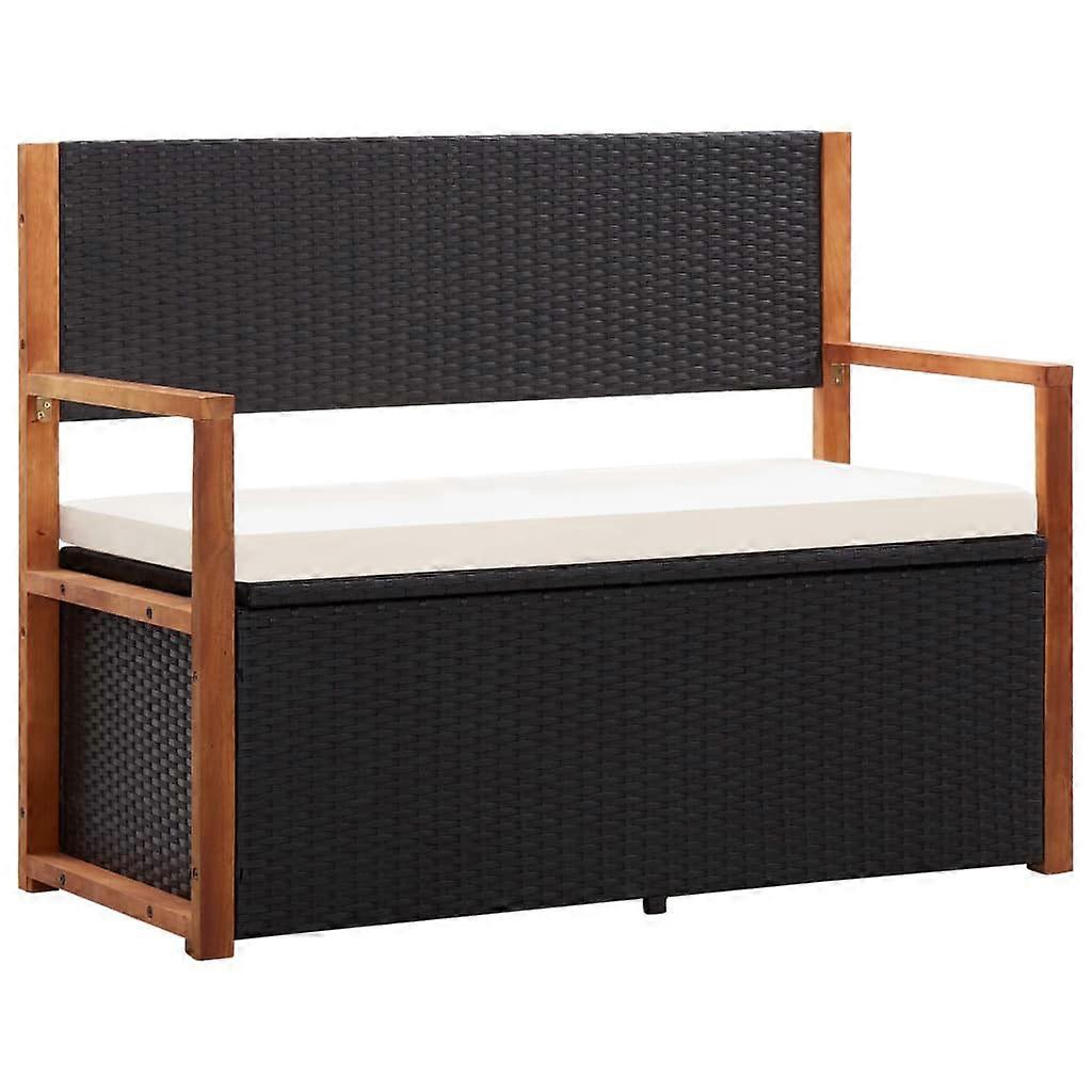 Bank mit Stauraum 115 cm Poly Rattan Massivholz Akazie Schwarz