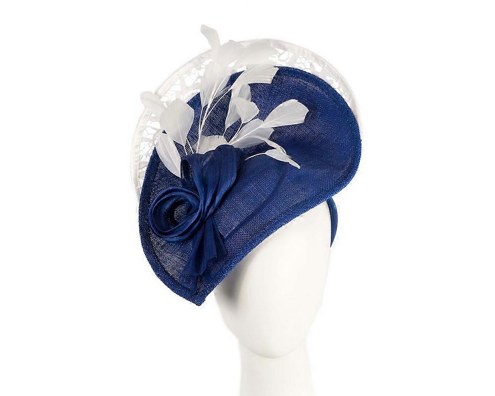 Bespoke blue & white racing fascinator by Fillies Collection S293RBW