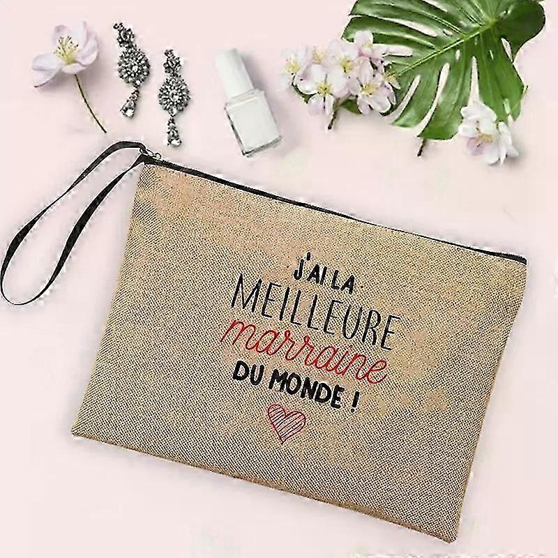 Best Godmother In World Print Cosmetic Bag Women Neceser Makeup Bag Linen Zipper Pouch Travel Toiletry Organizer Godmother Gifts