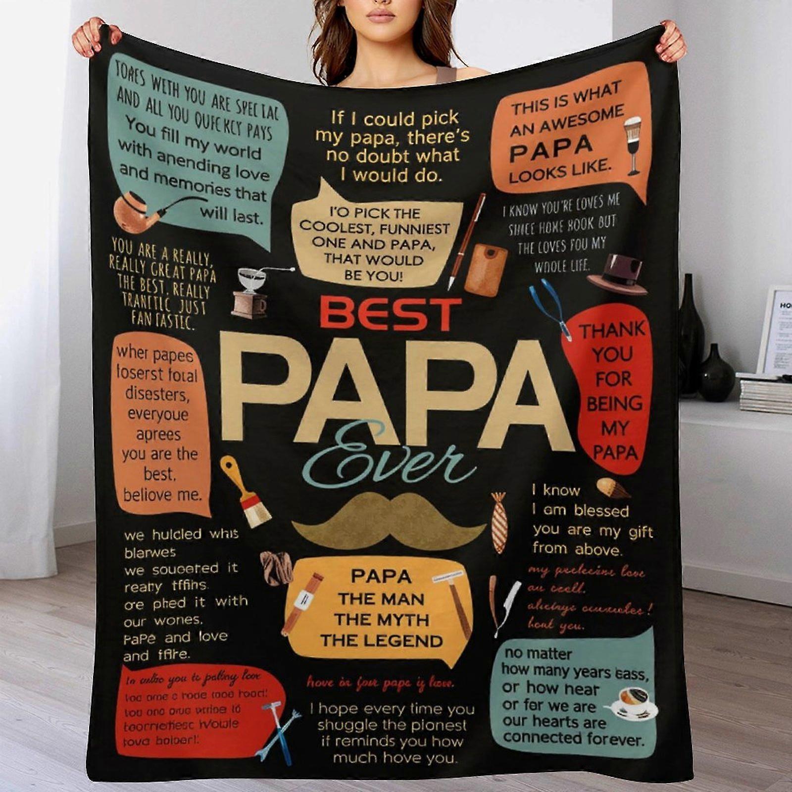 "Best Papa Ever" Quote Collage Graphic Flannel Blanket - Soft Warm Cozy Throw for Bedroom Living Room, Gift Blanket for Papa