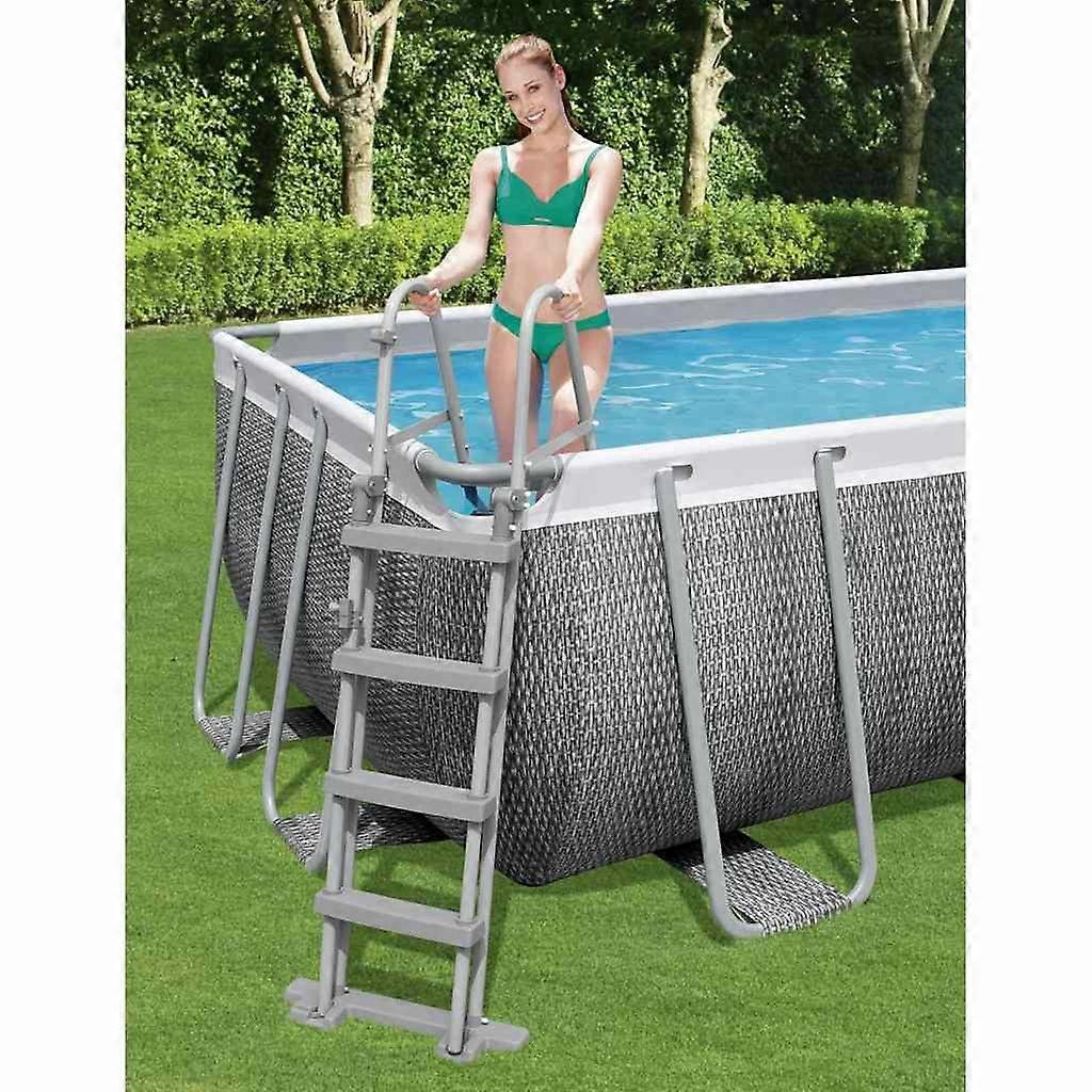 Diese 4-Stufen-Sicherheitsleiter von Bestway ist für Aufstellbecken konzipiert und hilft Schwimmern, sicher und bequem in den Pool ein- und auszusteigen. Die 4-stufige Poolleiter hat einen stabilen rostfreien Metallrahmen. Die rutschfesten, robusten Kunststoff-Sprossen sind fest am Rahmen befestigt und bieten Schwimmern einen sicheren Zugang zum Schwimmbecken. Darüber hinaus gibt es 2 robuste Griffe, die höhere Sicherheit gewährleisten und eine rutschfeste Plattform. Die Stufen an der Außenseite der Leiter können hochgeklappt werden, um die Benutzung der Leiter durch Kinder zu verhindern, sodass Unfälle leicht vermieden werden können. Die sichere Poolleiter eignet sich für oberirdische Schwimmbäder mit einer maximalen Höhe von 122 cm. Farbe: GrauMaterial: Korrosionsbeständiger Metallrahmen, robuste KunststoffstufenGeeignete Schwimmbeckenhöhe (maximal): 122 cmMaximale Belastbarkeit: 150 kgMit 2 x 4 rutschsicheren StufenStufen an der Außenseite der Leiter lassen sich hochklappenGeeignet für Wasser mit neutralem pH-Wert (nicht geeignet für Salzwasser)Zusammenbau erforderlich: JaBestway Artikelnummer: 58331 GPSR