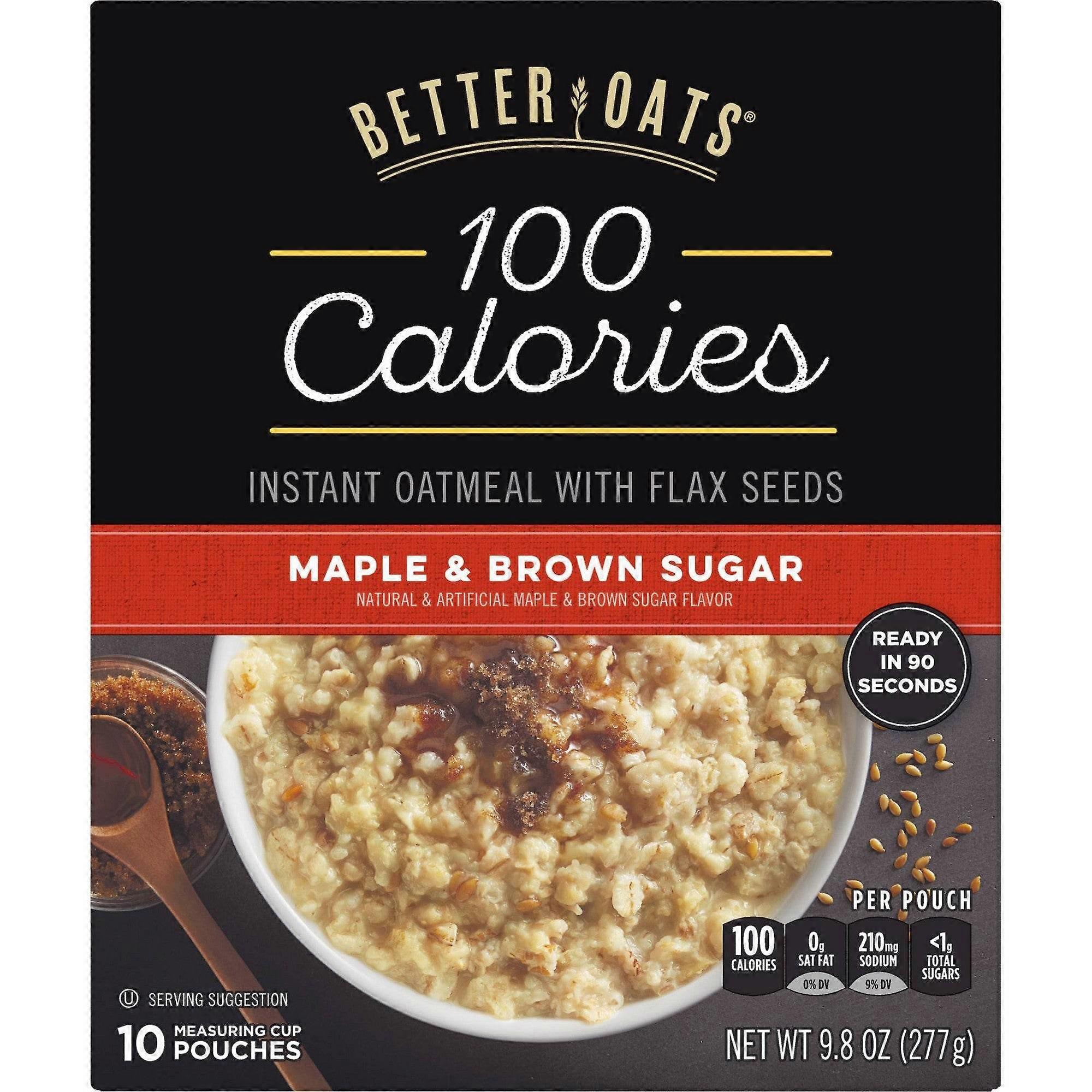Better Oats 100 Calories Instant Oatmeal With Flax Seeds, Maple & Brown Sugar, 9.8 Oz