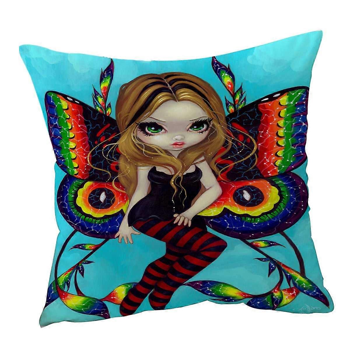Big Eyed Fairy with Vibrant Colorful Vivid Wings Cushion Cover