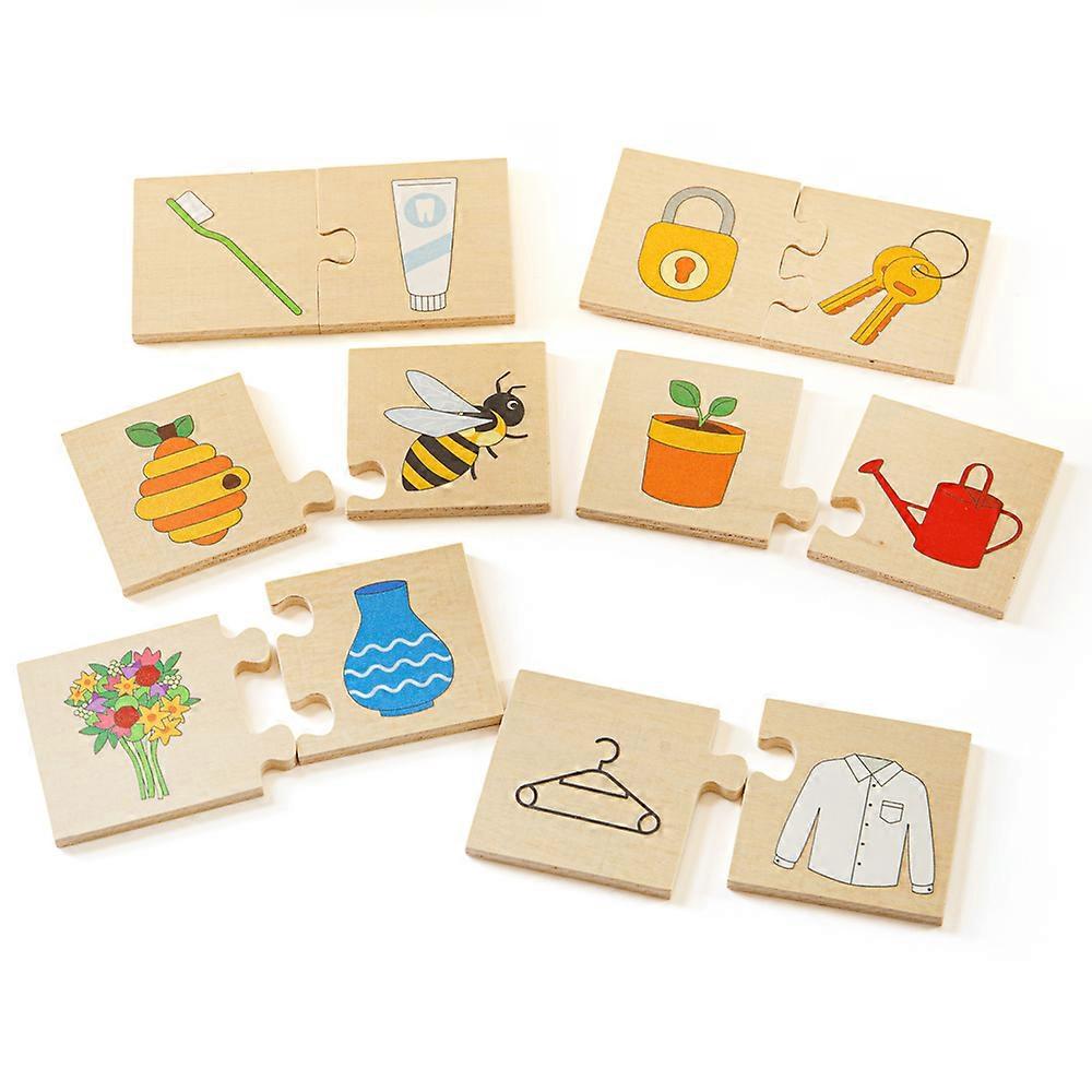 Can you match the wooden puzzle pieces correctly together? Our Things That Go Together jigsaw puzzle teaches children about different everyday objects and things that go together. What does the bumblebee match up with? What about the padlock? This educational puzzle is a fun way to develop kids’ vocabulary as they match the pairs together and learn about each object in more detail. The smooth chunky jigsaw pieces are perfectly sized for little hands to grasp, place and examine. Made from premium-quality, responsibly sourced wood and coloured with non-toxic paints and lacquers. Conforms to current European safety standards. 32 puzzle pieces. Things That Go Together product features: Match the items that go together 32 puzzle pieces Made from high quality, responsibly sourced materials 3 years +
