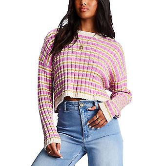 Billabong Womens In A Daze Knitted Cropped Striped Jumper Top - Bright Orchid