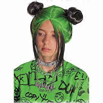 Billie Eilish Celebrity Rock Star Green Black Double Bun Child Girls Costume Wig