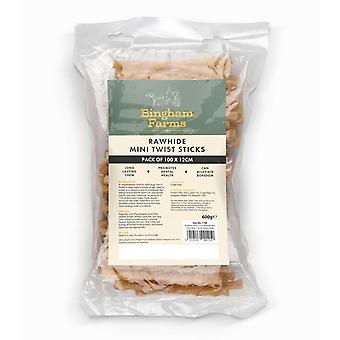 Bingham Farms 12cm Rawhide Mini Twist Sticks Dog Treat 100 x 12cm