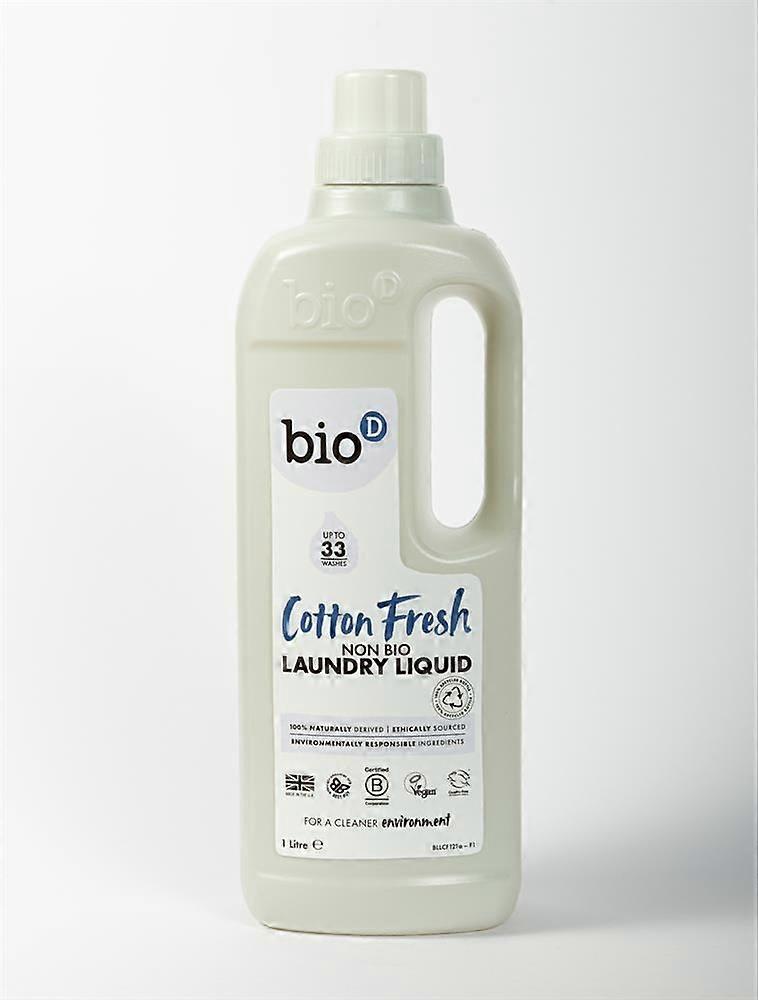 Experience exceptional cleaning with Bio-D Cotton Fresh Laundry Liquid 1L, designed to care for your clothes and the environment simultaneously. This non-bio formula offers powerful stain removal while remaining gentle on all fabric types, including whites, colours, and delicates.Infused with a crisp, fresh fragrance reminiscent of sun-dried linens, it leaves your laundry smelling naturally clean and revitalized. The plant-based ingredients are biodegradable and cruelty-free, reflecting a commitment to sustainability and ethical production.Ideal for everyday use, Bio-D Cotton Fresh Laundry Liquid performs effectively even at low temperatures, enabling you to reduce energy consumption without sacrificing cleaning efficiency. Additionally, it is safe for use in septic tanks, making it a responsible choice for homes with private waste systems. Powerful cleaning action, gentle on fabrics Suitable for whites, colours, and delicate garments Long-lasting fresh linen fragrance Plant-based, biodegradable, and cruelty-free formula Effective at low temperatures to save energy Safe for septic tanksChoose Bio-D Cotton Fresh Laundry Liquid 1L for a reliable, eco-friendly laundry solution that combines performance with care for your wardrobe and the planet.