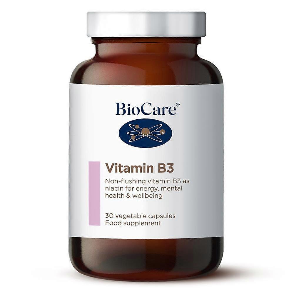 Biocare Vitamin B3 provides a high-quality source of niacinamide, delivering 100mg per capsule to support your overall health and well-being. Vitamin B3 is an essential nutrient that plays a vital role in maintaining the proper function of the nervous and digestive systems. Key Benefits Supports healthy nervous system function, aiding in cognitive and neurological health. Promotes efficient digestive system activity, contributing to optimal nutrient absorption. Helps maintain energy metabolism by assisting in the conversion of food into energy. Useful for individuals with low-calorie or nutritionally limited diets who may require additional vitamin B3 support. Contributes to healthy skin and may improve skin barrier function. Recommended Use This product is ideal for adults seeking to supplement their diet with vitamin B3 to ensure adequate intake, particularly in cases where nutritional intake is compromised due to dietary restrictions, calorie reduction, or increased physiological demand. It can be taken daily as part of a balanced supplementation routine to support nervous and digestive system health. Usage Instructions Take one capsule daily with water, preferably with a meal or as directed by a healthcare professional. Do not exceed the recommended dose. Quality Assurance Manufactured to the highest standards, this supplement undergoes rigorous quality control to ensure potency, purity, and safety.