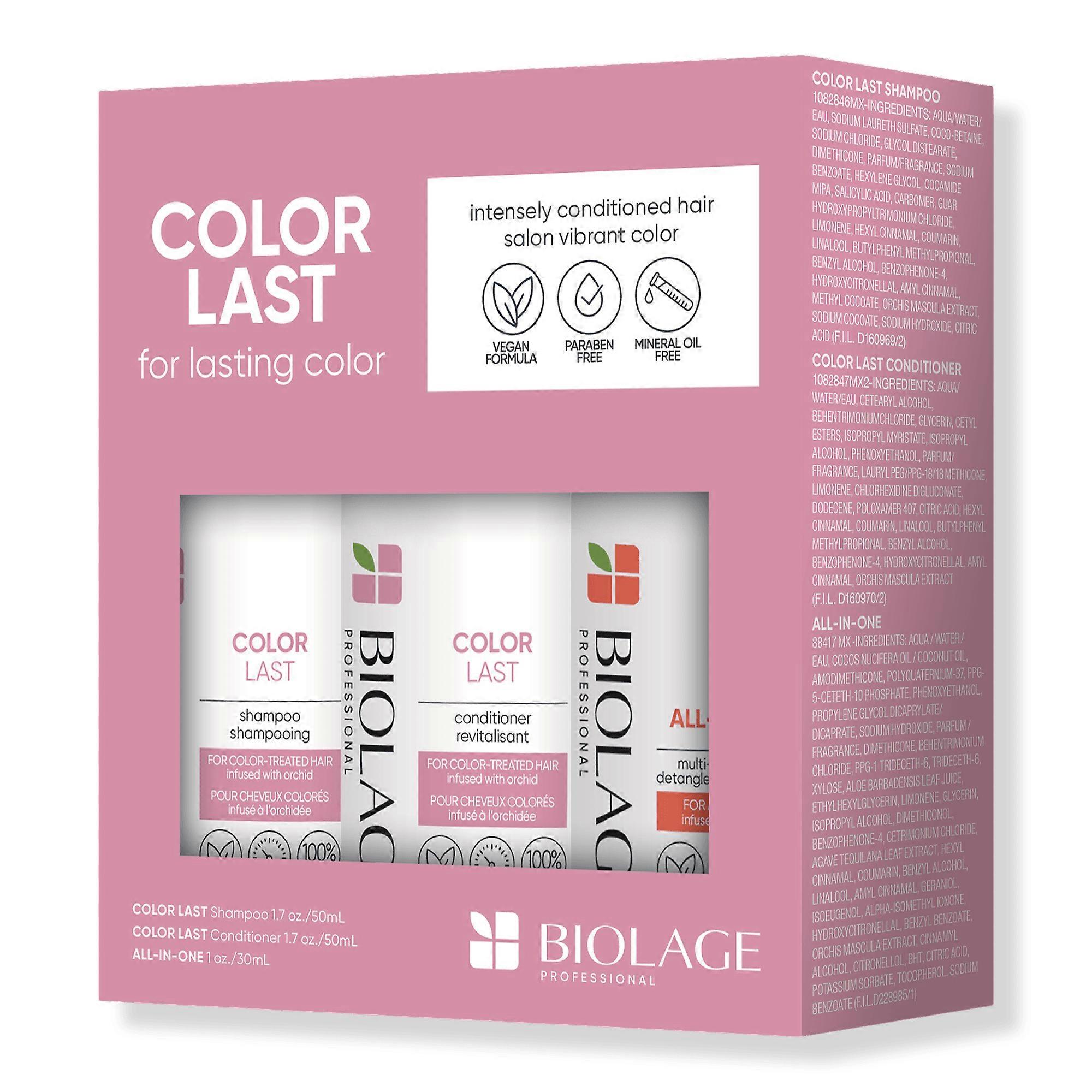 Biolage Colorlast Travel Set, exclusive to Ulta, protects color-treated hair, strengths hair, and repairs damage.