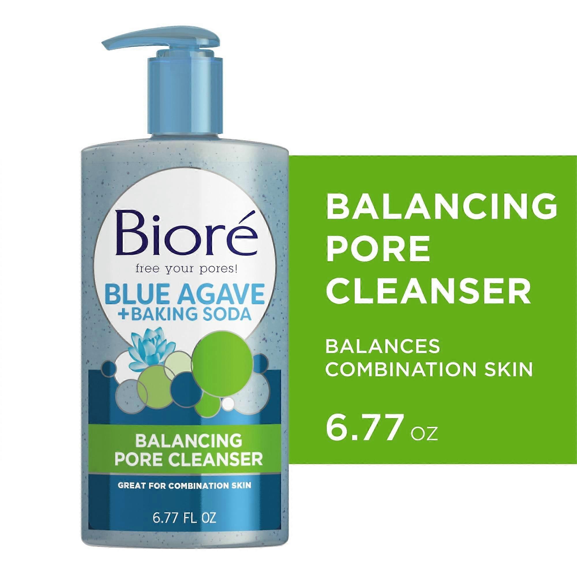 Let's face it, Impurities aren't pretty Combination skin is two-faced: dry in some areas and oily in others. (Looking at you, T-zone ) All you want is an all-over, deep-pore clean -- but not at the expense of your already dry patches. With Bioré Blue Agave & Baking Soda Pore Cleanser, you can deep clean, naturally exfoliate, and balance combination skin. This facial cleanser with baking soda for acne deep cleans to remove dirt and impurities from the pore while gently exfoliating away dead cells to reveal smooth, healthy-looking skin. The power of baking soda is the answer to those dirty little secrets Biore Skincare targets the root of all skin problems-the evil clogged pore. So when it comes to dirt and oil, we take a no nonsense approach to fight smarter, not harder. Our scrub, liquid, powder, strip, mask and bar cleansing products go straight to the source of those pesky pores for deeply clean, beautiful skin. Suggested Use: For optimal results use cleanser daily. Wet face. Pump cleanser into hands, gently work into a foam. Massage over entire face. Rinse thoroughly. UPC: 019100222571 Weight: 0.82 lbs
