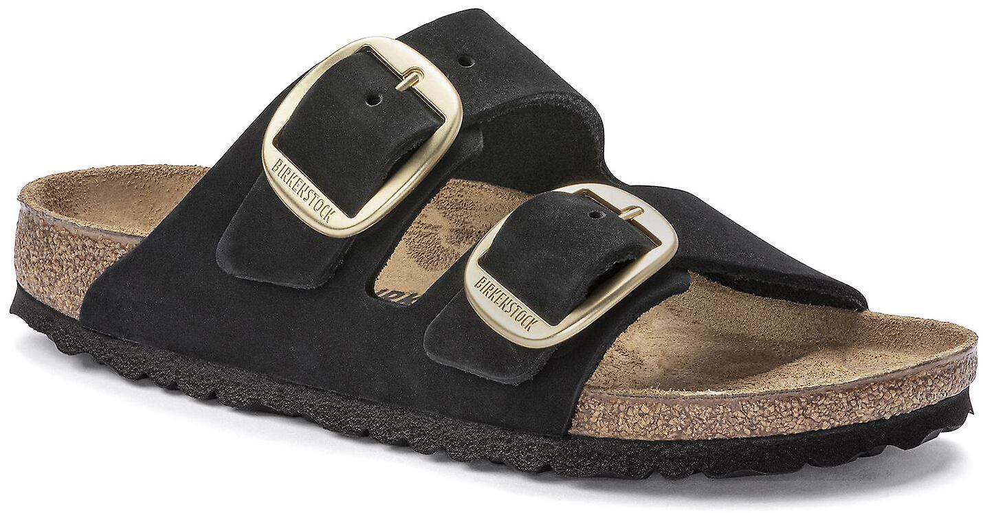 Birkenstock Arizona Big Buckle Black Gold Leather Narrow Fit Womens Sandals