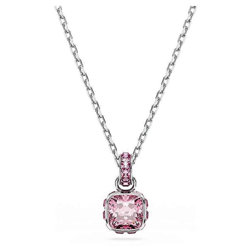 Birthstone Rhodium Plated Pink Square Cut October Pendant 5651791
