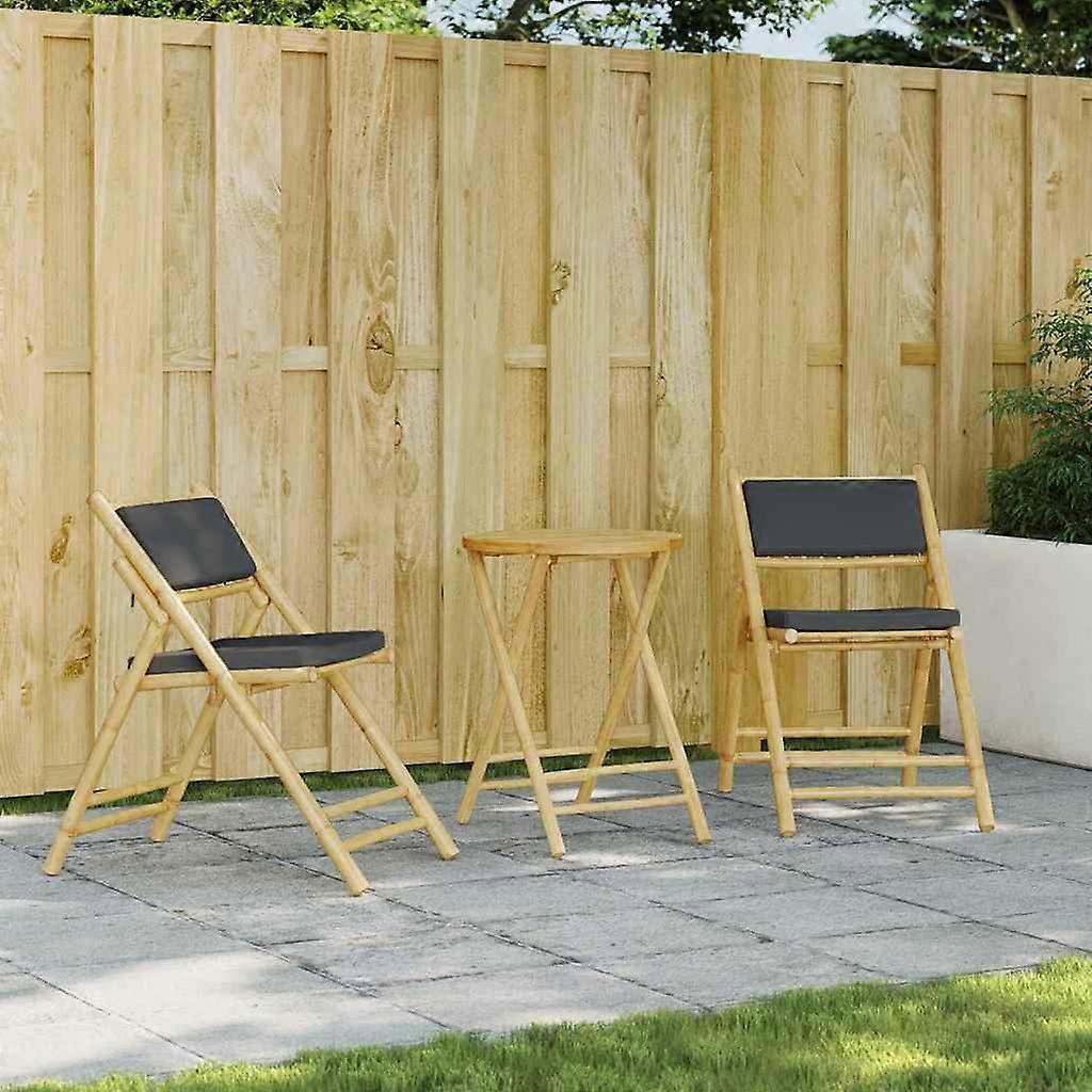 Bistrostühle 2 Stk. Klappbar mit Dunkelgrauen Kissen Bambus