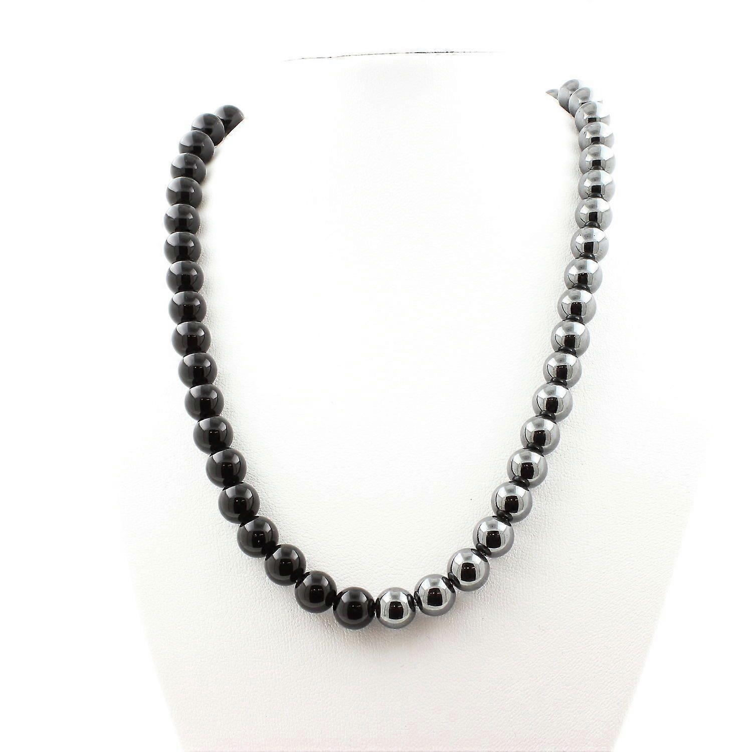 Black Agate + Hematite 8 mm beaded necklace Stainless steel chain