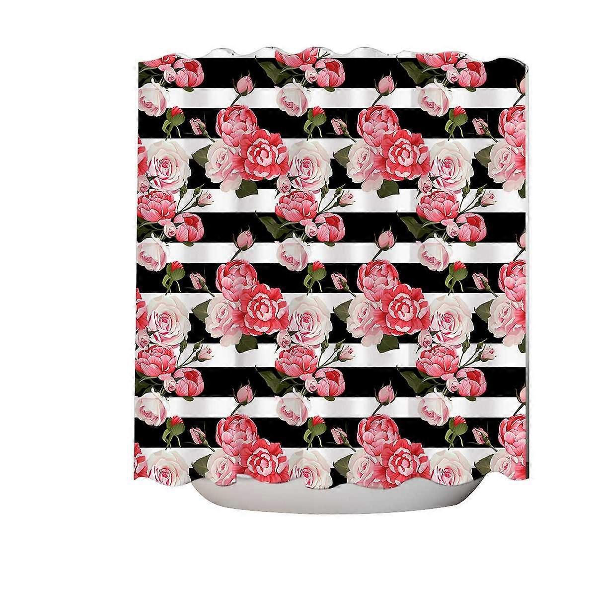 Black and White Stripes and Pinkish Roses Shower Curtain