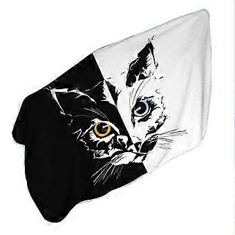 Black and White Tough Cat Face Yellow VS Blue Microfiber Beach Towel
