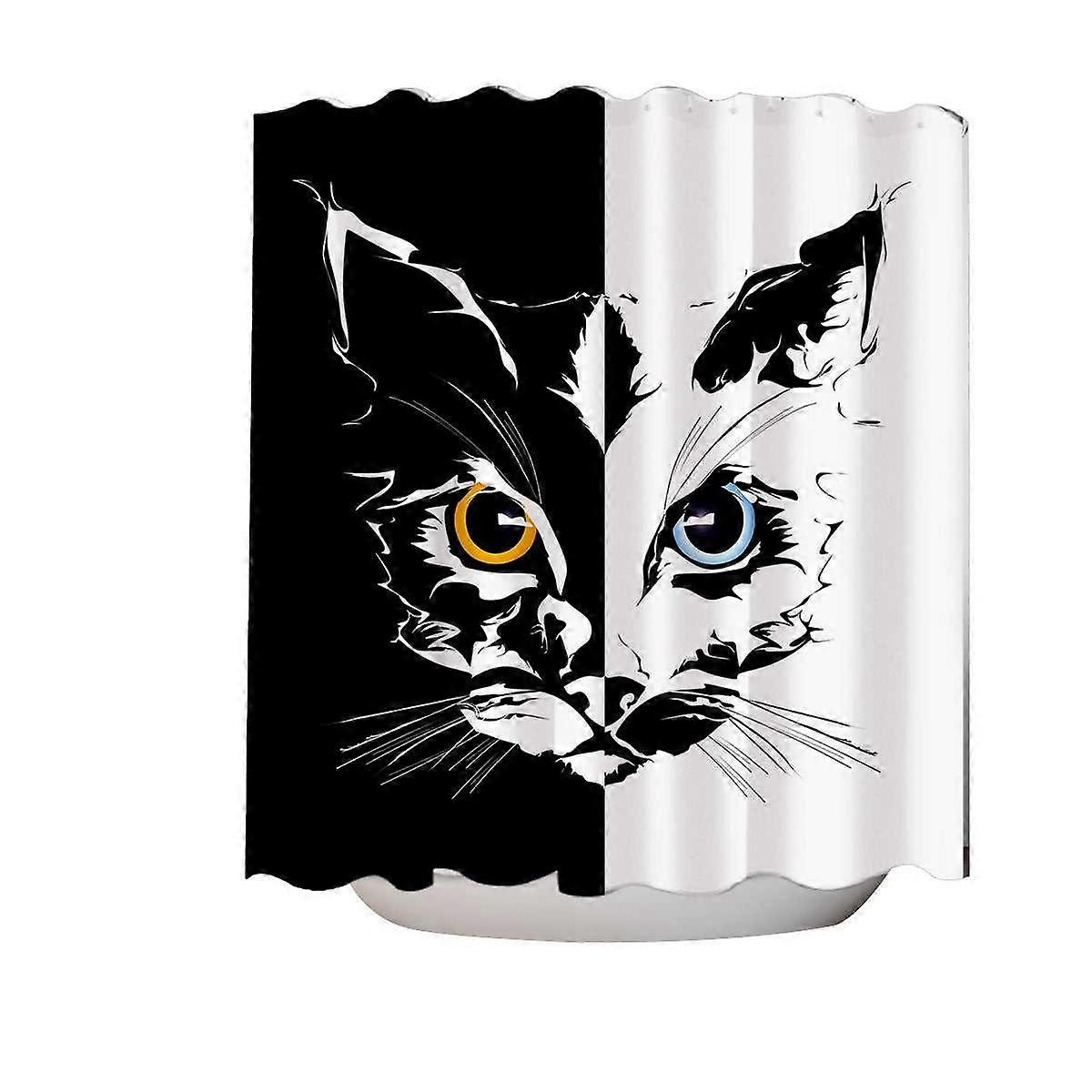 Black and White Tough Cat Face Yellow VS Blue Shower Curtain