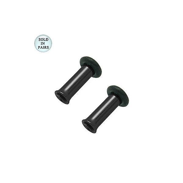 Black anodized titanium single flared tunnel eyelet plugs with o-ring - 8 gauge
