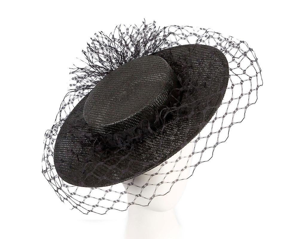 Black boater hat with face veil by Fillies Collection S305B