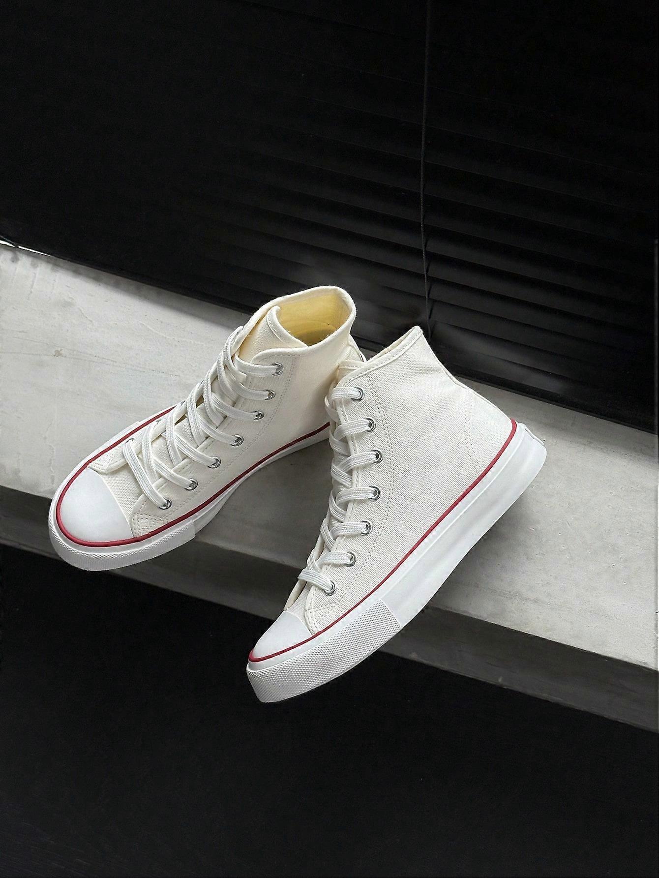 Black Canvas Shoes For Women&Men, High Top Casual Canvas Sneakers, Classic Mid-Top Canvas Shoes, Fashion Lace-Up Vulcanized Shoes, Suitable For Spring