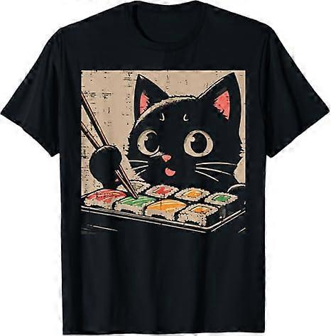 Black Cat Eating Sushi Kawaii Food Women Girls Kids T-Shirt