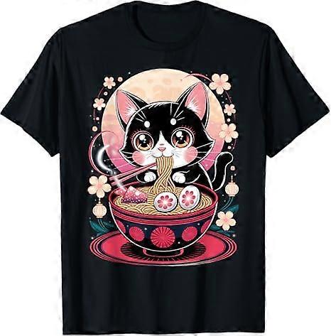 Black Cat Eating Sushi Kawaii Food Women Girls Kids T-Shirt