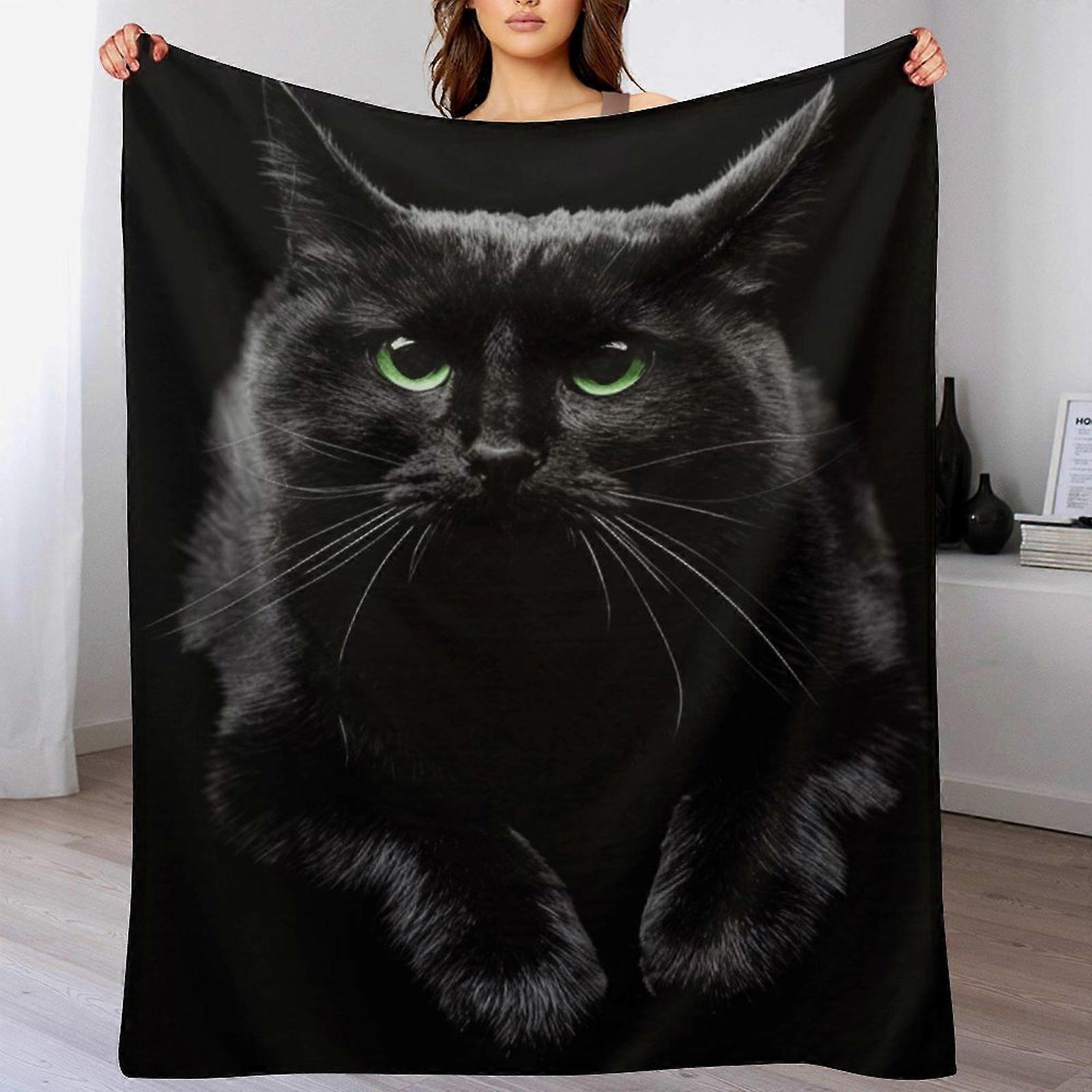 Black Cat Portrait Print Flannel Blanket - Soft Warm Throw for Bedroom | Cute Pet Decor for Cat Lovers