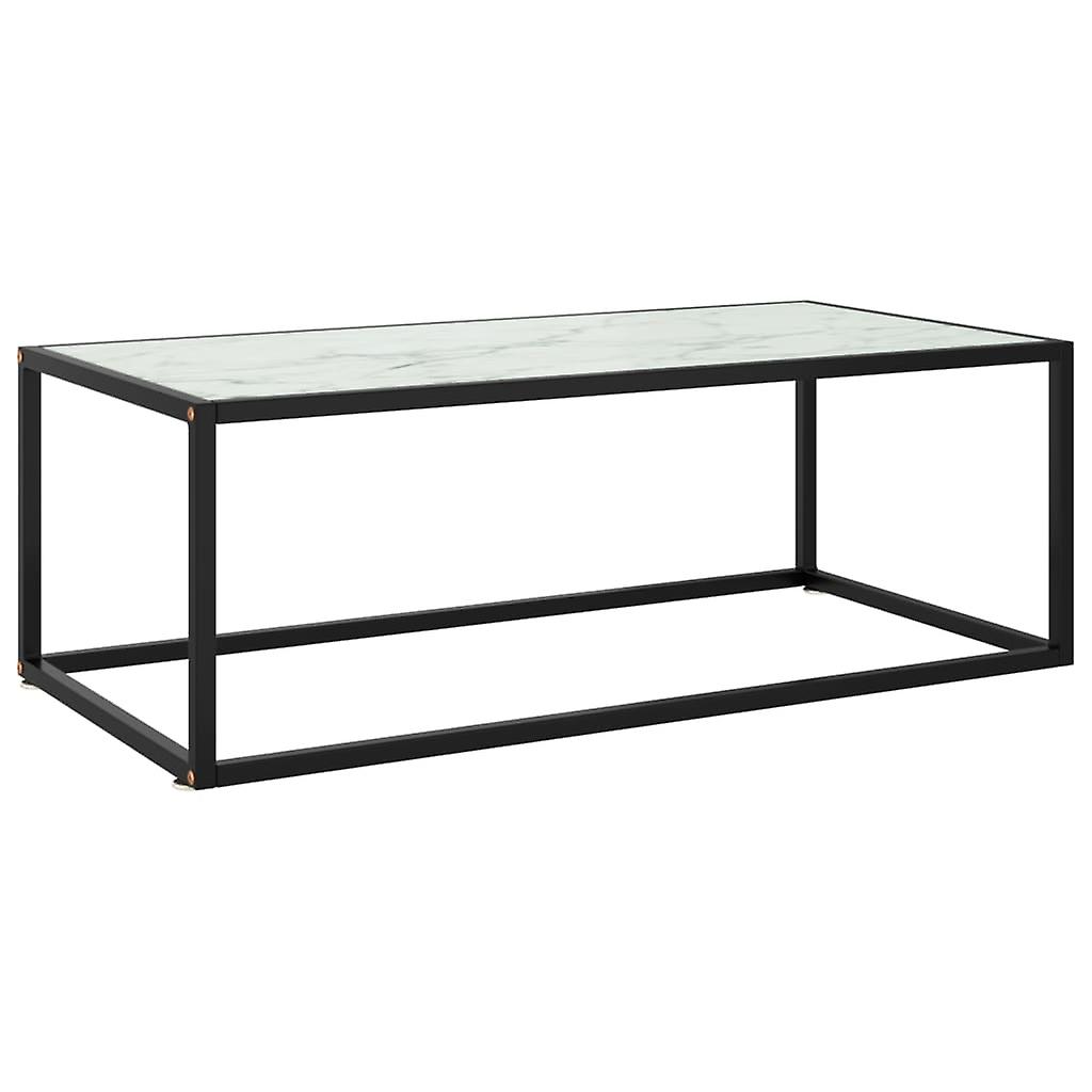 Couchtisch Schwarz mit Weißem Glas in Marmor-Optik 100x50x35 cm