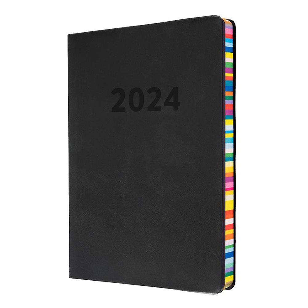 Black Collins Debden Edge A5 Day to A Page 2024 Sophisticated Leather-Look Diary
