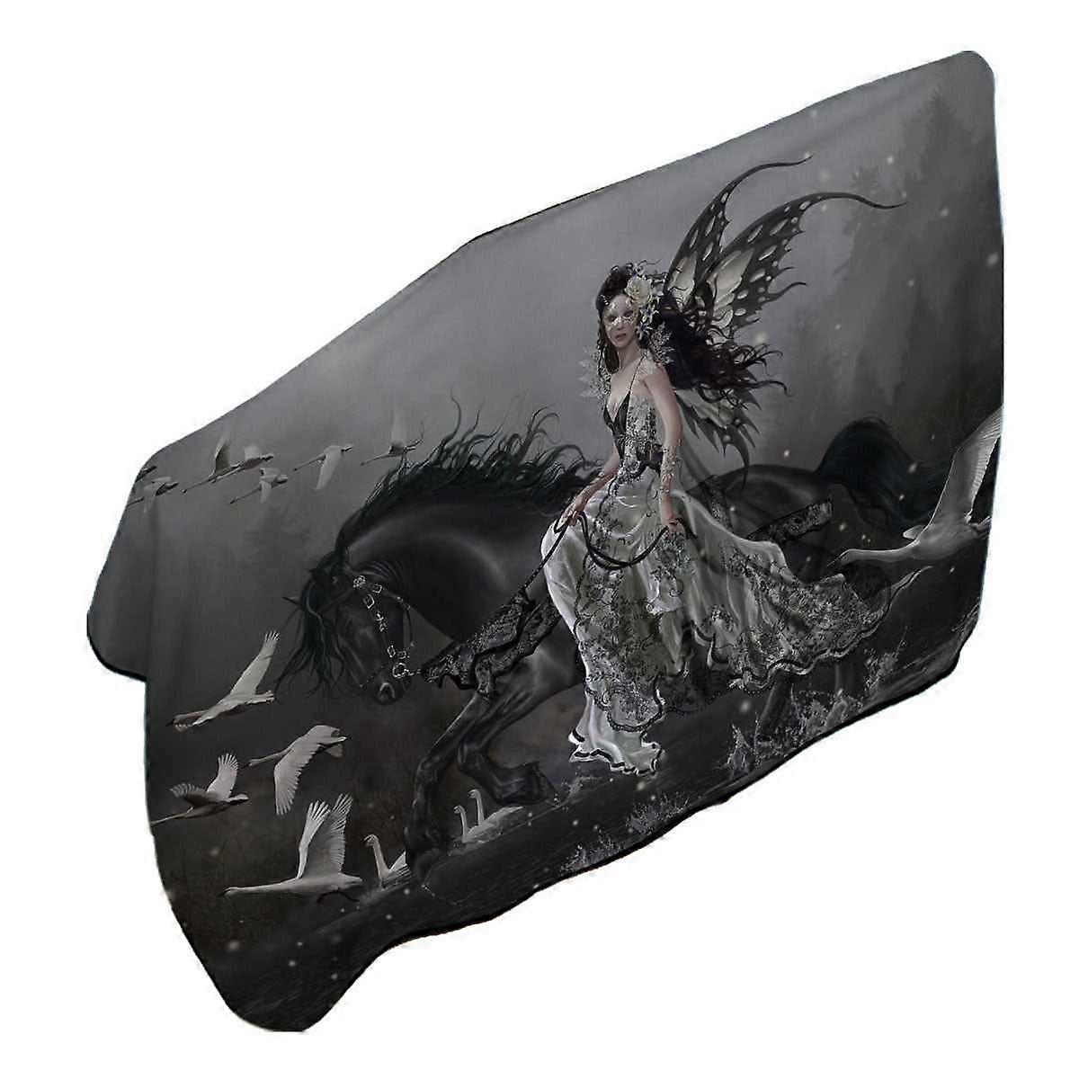 Black Horse Fairy Lamentation of Swans Fantasy Art Microfiber Beach Towel