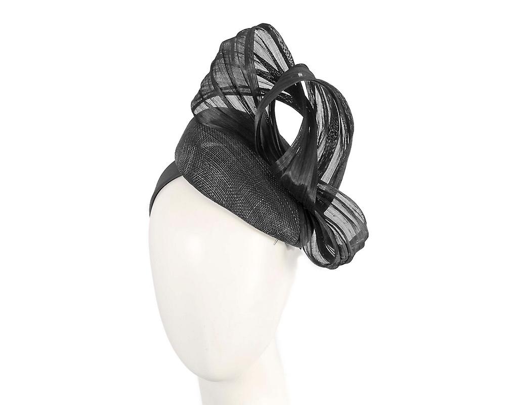 Black pillbox fascinator with silk abaca bow by Fillies Collection S307B S307B