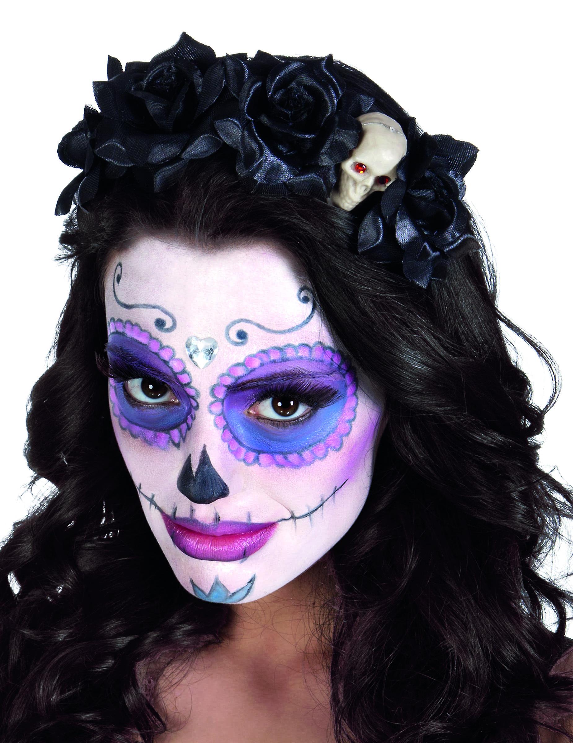 Serre-tête roses noires avec tête de mort femme Dia de los muertos