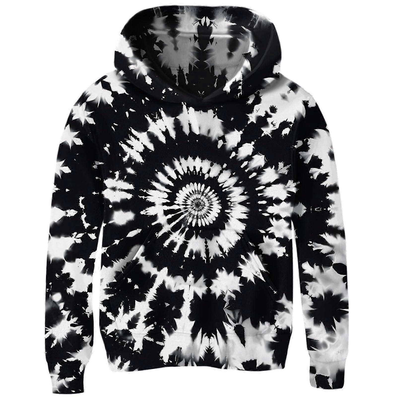 Black White Tie Dye 3D Hoodie Men's Abstract Graphic Pullover Casual Trendy Sweatshirt