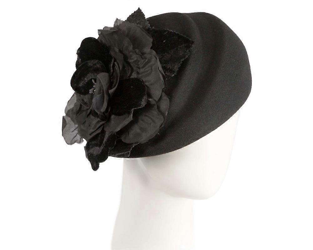 Black Wool Hat with Floral Accent - Winter Elegance F709B