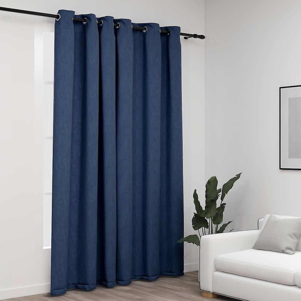 Verdunkelungsvorhang mit Ösen Leinenoptik Blau 290x245 cm