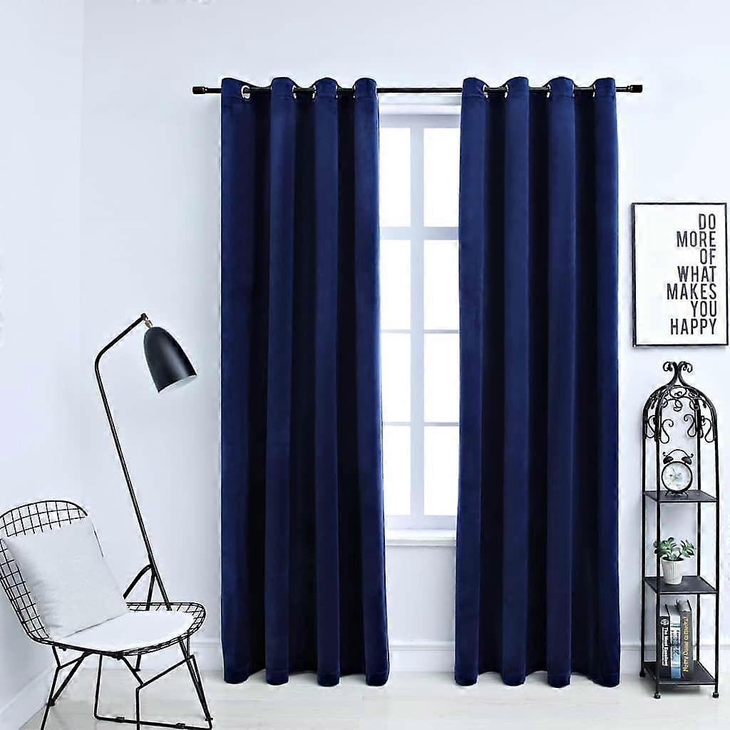 Verdunkelungsvorhänge mit Ösen 2 Stk. Samt Dunkelblau 140x245cm
