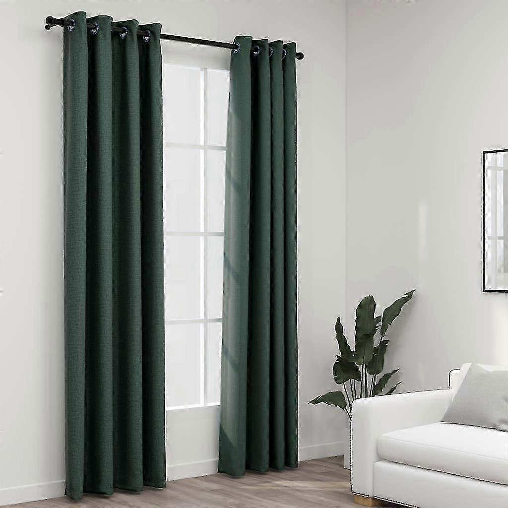 Verdunkelungsvorhänge Ösen Leinenoptik 2 Stk. Grün 140x225 cm