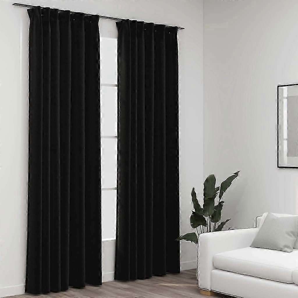 Verdunkelungsvorhänge mit Haken Leinenoptik 2 Stk. 140x225 cm