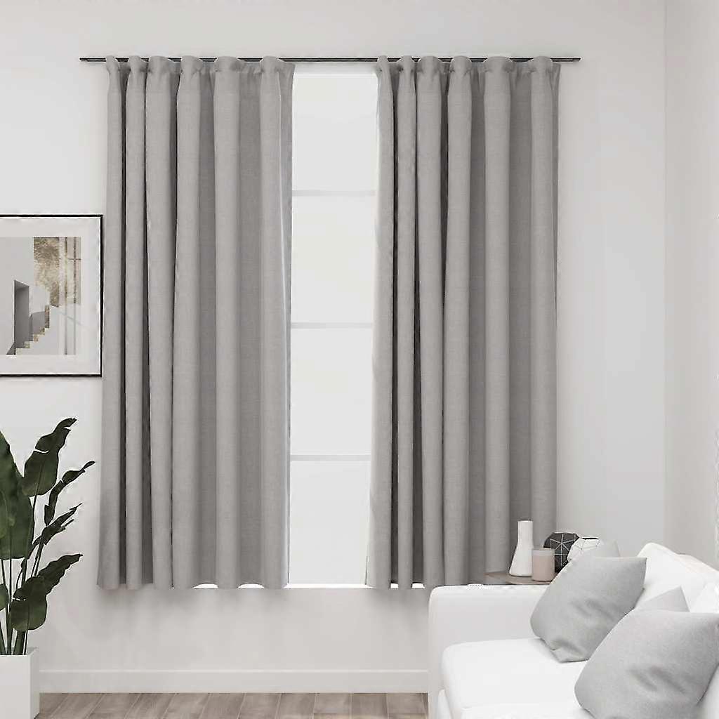Verdunkelungsvorhänge Haken Leinenoptik 2 Stk. Grau 140x175 cm