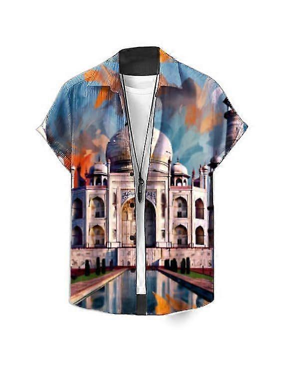 BLACKSMITH Men's Taj Mahal Printed Half Sleeve Classic Fit Shirt