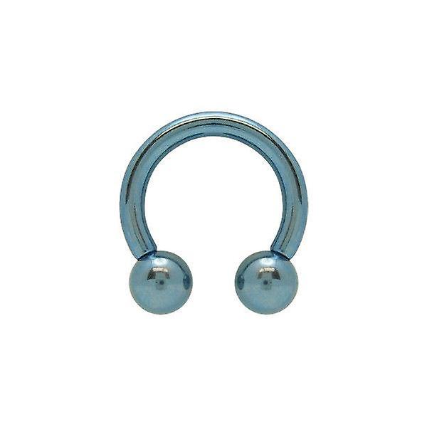Blue Anodized Titanium 10G Circular Barbell Horseshoe RingDescriptionThis is a blue anodized titanium horseshoe ring.This horseshoe ring has been anodized over surgical steel.This horseshoe ring comes in blue.The size available is 10 gauge with a length of 12mm - 1/2 of an inch.The balls measure approximately 6mm.This item is sold individually.This item is completely nickel free.