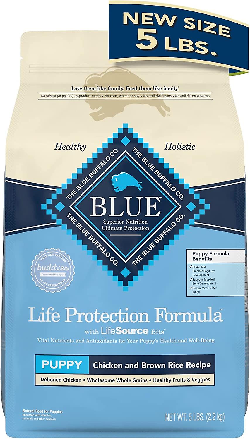 Blue Buffalo 803947 Puppy Chicken and Brown Rice Recipe Dry Dog Food - 5lb Bag