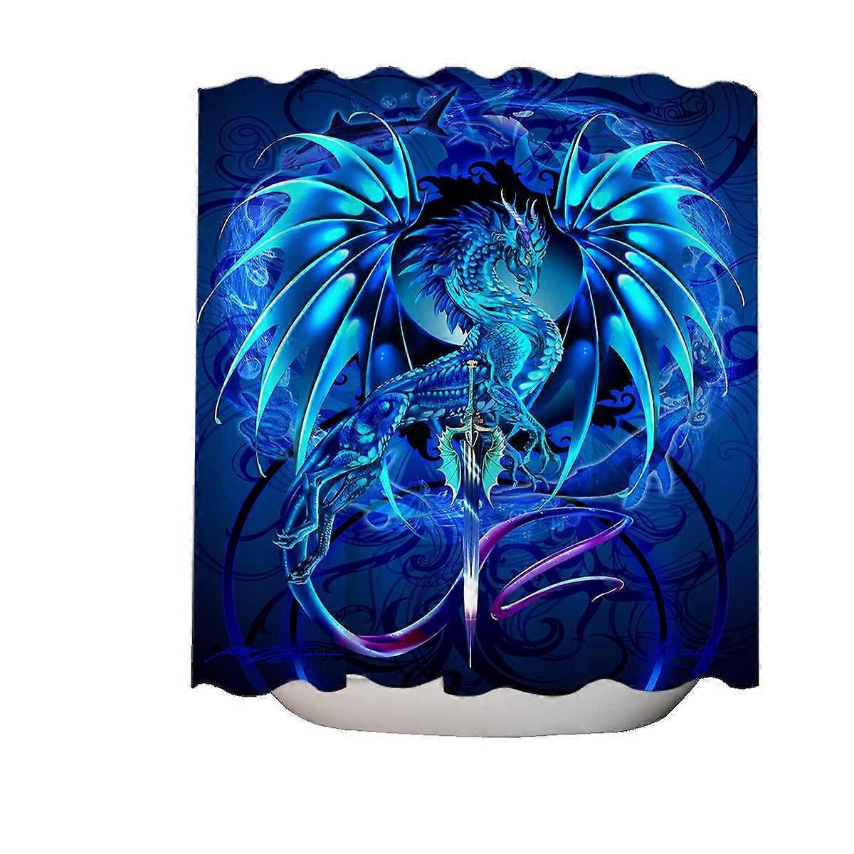 Blue Fantasy Weapon Dragon Sword Sea Blade Shower Curtain