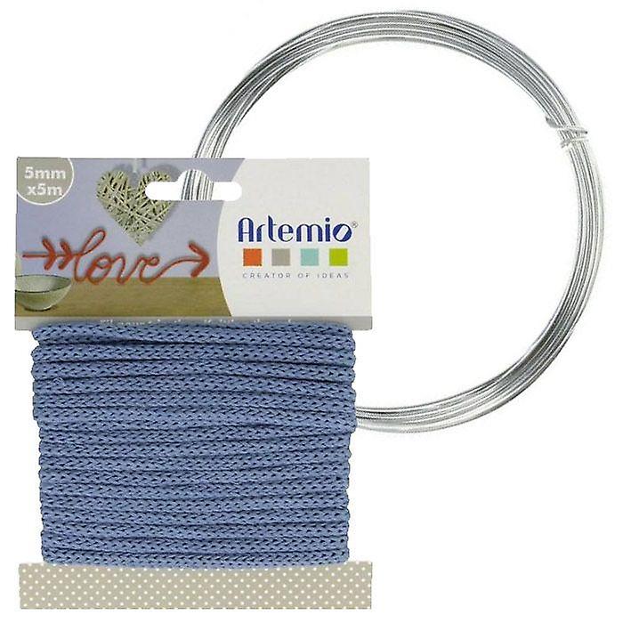 Blue knitting yarn 5 mm x 5 m + aluminium wire