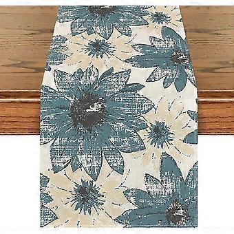 Blue Retro Daisy Spring Table Runner, Seasonal Vintage Kitchen Dining Table