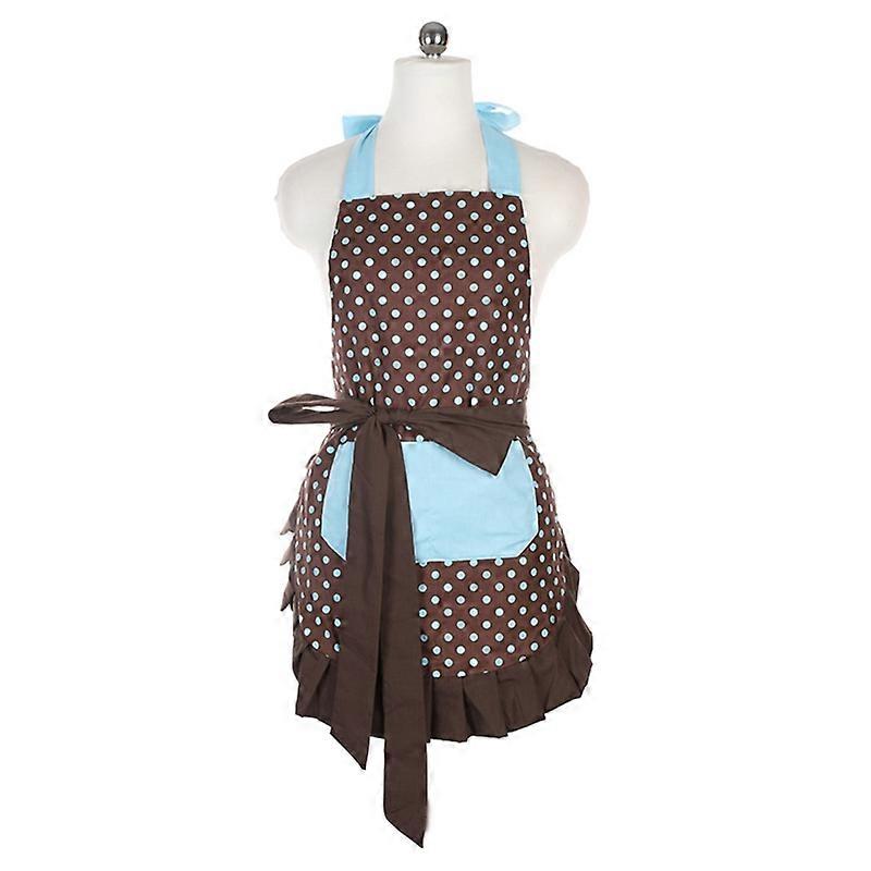Blue Round Polka Dots Kitchen Apron with Sleeveless Pockets Hanging Neck Strap Around Waist for Adult Women Cooking Painting Gardening Cotton