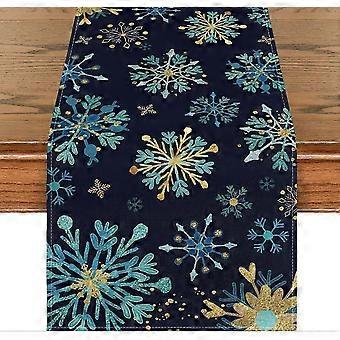 Blue Snowflakes Hexagon Winter Table Runner, Seasonal Christmas Kitchen Dining Table Decoration for Outdoor Home Party 13x72 Inch